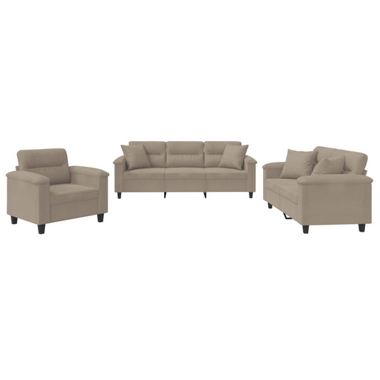 Set Divani 3 pz con Cuscini tortora in Tessuto Microfibra