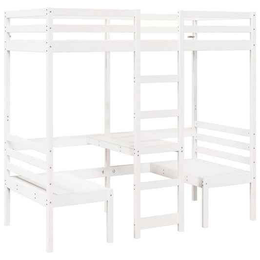 Giroletto Soppalco con Scrivania e Sedie Bianco 80x200cm Pino