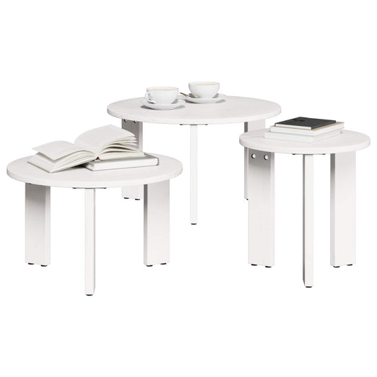 Tavolino da salotto 3 pcs Bianco Legno di pino massello