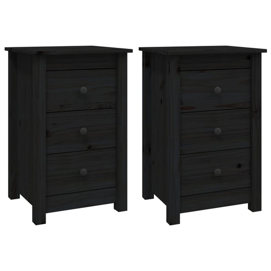 Comodini 2 pz Neri 79,5x38x65,5 cm in Legno Massello di Pino