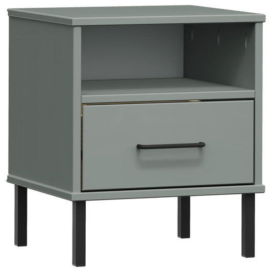 Comodino con Gambe in Metallo Grigio Legno Massello Pino OSLO