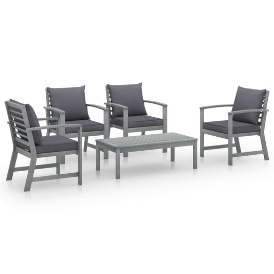 5-teiliges Gartensofa-Set mit Kissen aus grauem Akazienholz