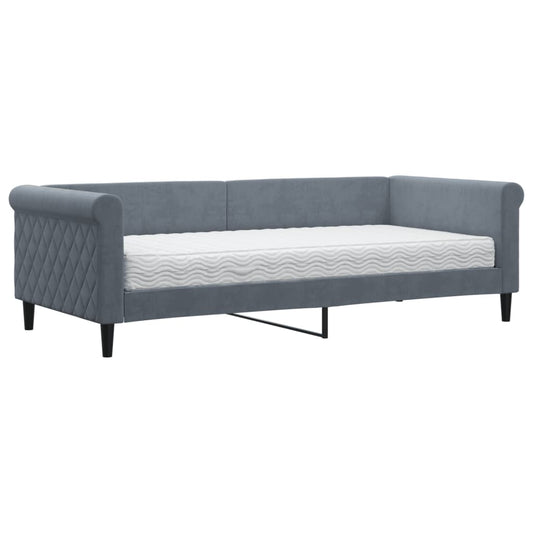 Divano Letto con Materasso Grigio Chiaro 90x200 cm in Velluto