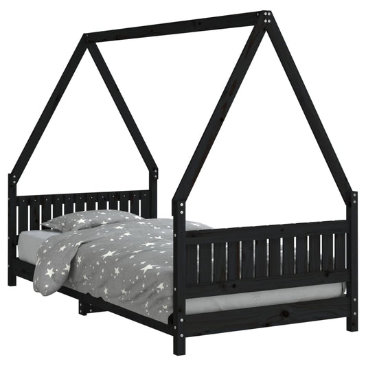 Giroletto per Bambini Nero 90x190 cm in Legno Massello di Pino