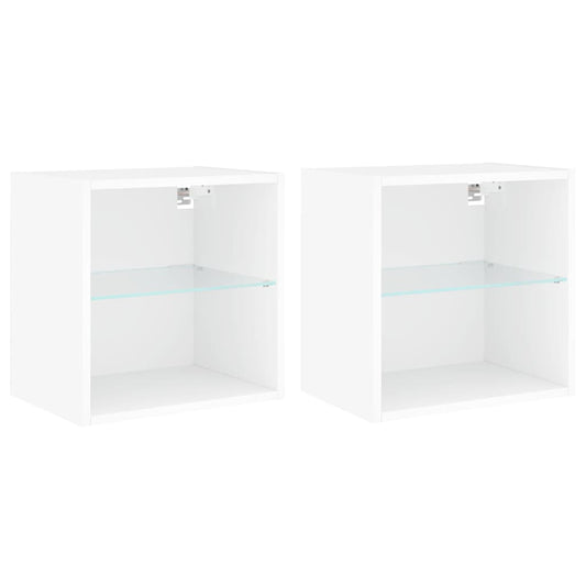 Wand-TV-Schränke mit LED-Leuchten, 2 Stück, Weiß, 30 x 28,5 x 30 cm