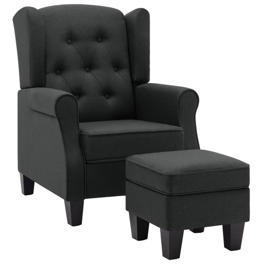 Poltrona con Poggiapiedi Grigio Scuro in Tessuto