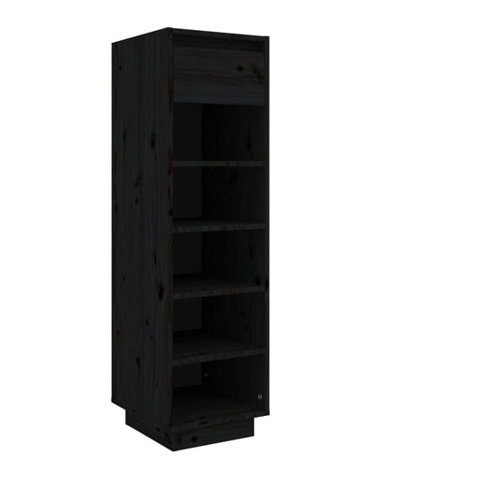 Schwarzes Schuhregal 30x34x105 cm aus massivem Kiefernholz