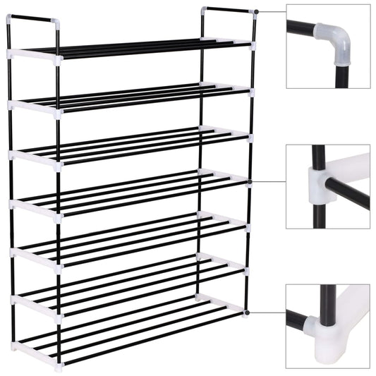 vidaXL Shoe Rack with 7 Shelves in Metal and Plastic Black