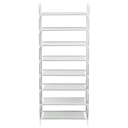Shoe rack with 10 shelves in metal and non-woven fabric in silver