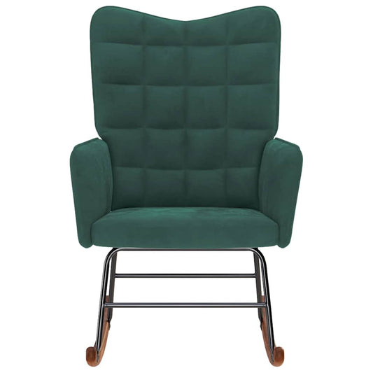 Sedia a dondolo con schienale alto in velluto verde scuro