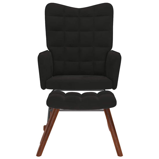 Sedia a dondolo con sgabello in velluto nero