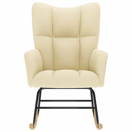 Poltrona a Dondolo con poggiapiedi crema in Tessuto