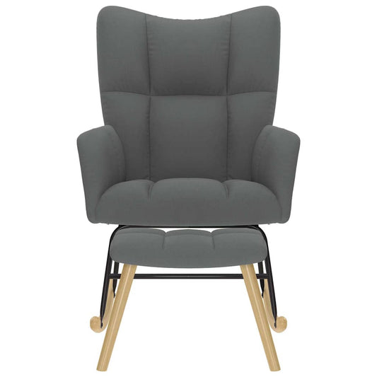 Poltrona a Dondolo con Poggiapiedi Grigio Scuro in Tessuto