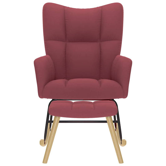 Poltrona a Dondolo con Poggiapiedi Rosso Vino in Velluto