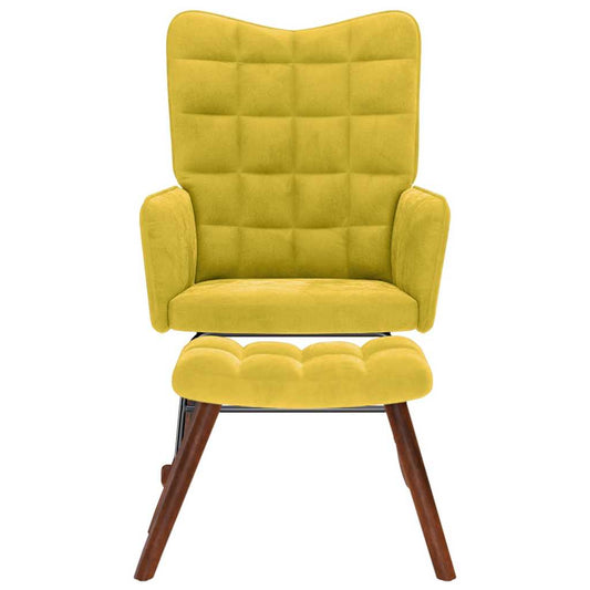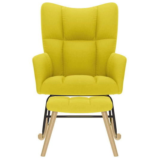 Poltrona a Dondolo con Poggiapiedi Giallo Chiaro in Tessuto