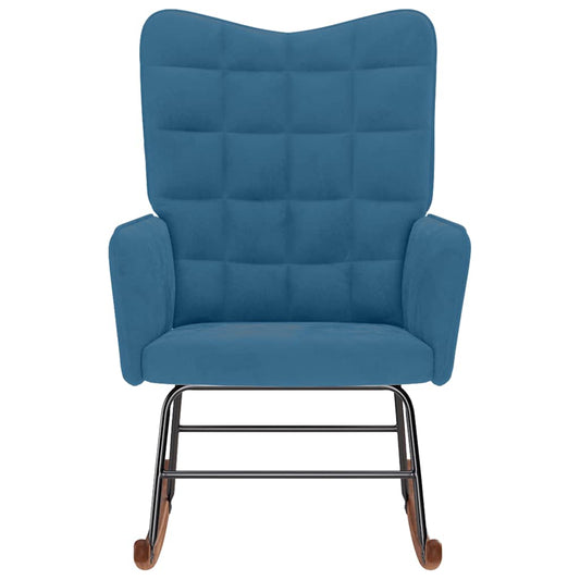 Poltrona a Dondolo con Poggiapiedi Blu in Velluto