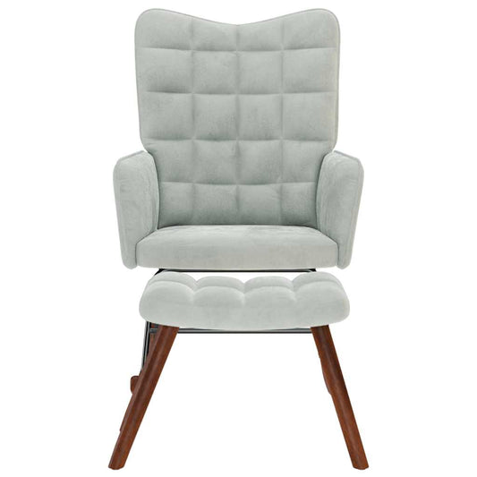 Sedia a dondolo con sgabello in velluto grigio chiaro
