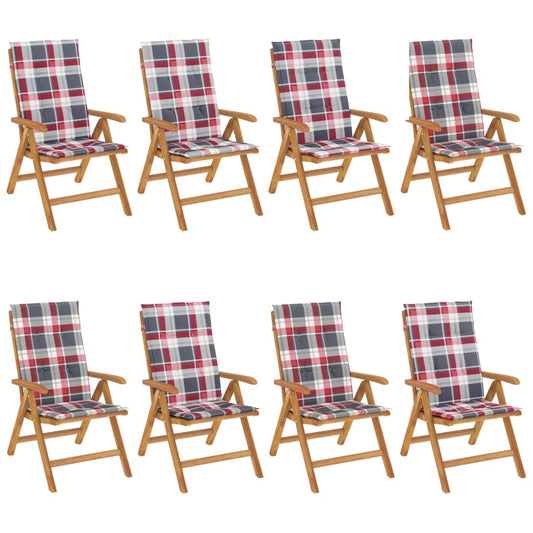 Sedie da Giardino Reclinabili con Cuscini 8 pz in Legno di Teak