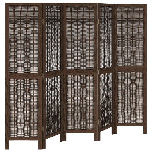 Divisorio Ambienti 5 Pannelli Marrone Scuro Massello Paulownia