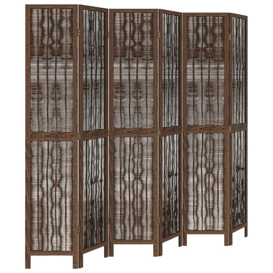 Room Divider 6 Panels Brown Solid Paulownia Wood