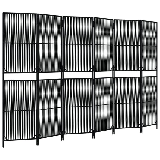 Divisorio per Ambienti a 6 Pannelli Nero in Polyrattan