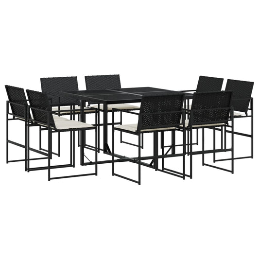 9-piece Garden Dining Set with Black Polyrattan Cushions