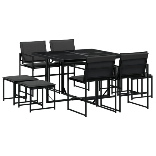 9-teiliges Garten-Essset mit schwarzen Textilene-Kissen