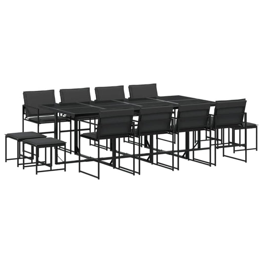 13-teiliges Garten-Essset mit schwarzen Textilene-Kissen