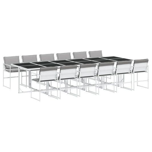 13-teiliges Garten-Essset mit weißen Textilene-Kissen