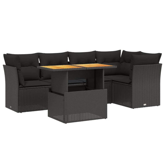 Gartensofa-Set mit Kissen 7-teilig, schwarzes Polyrattan