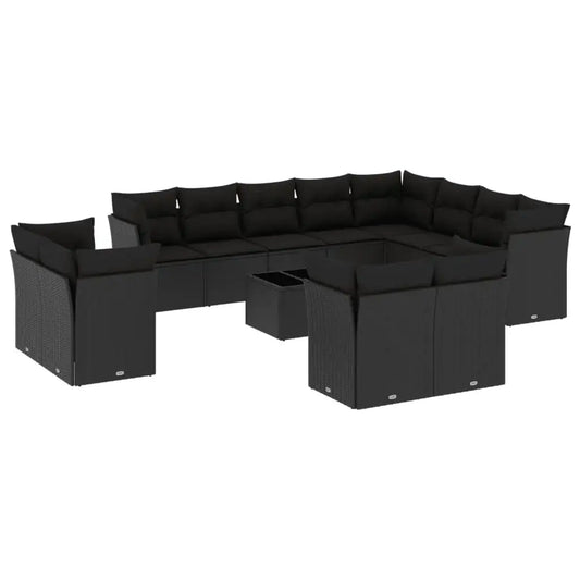 Set Divani da Giardino 13pz con Cuscini Nero in Polyrattan