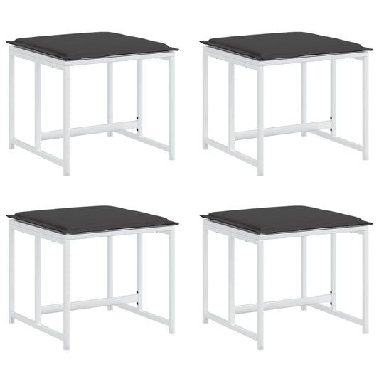 Sgabelli Giardino con Cuscini 4 pz Bianchi Acciaio e Textilene