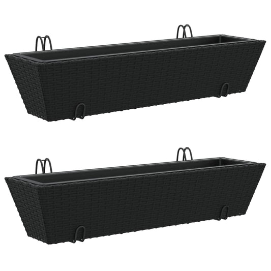 Fioriere con Ganci 2 pz Nere in Polyrattan