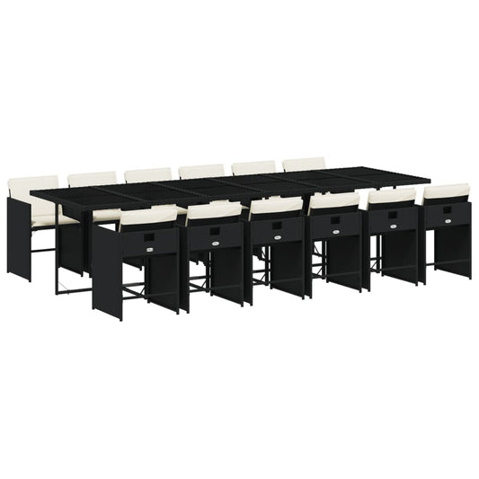 13pc Garden Dining Set with Black Polyrattan Cushions