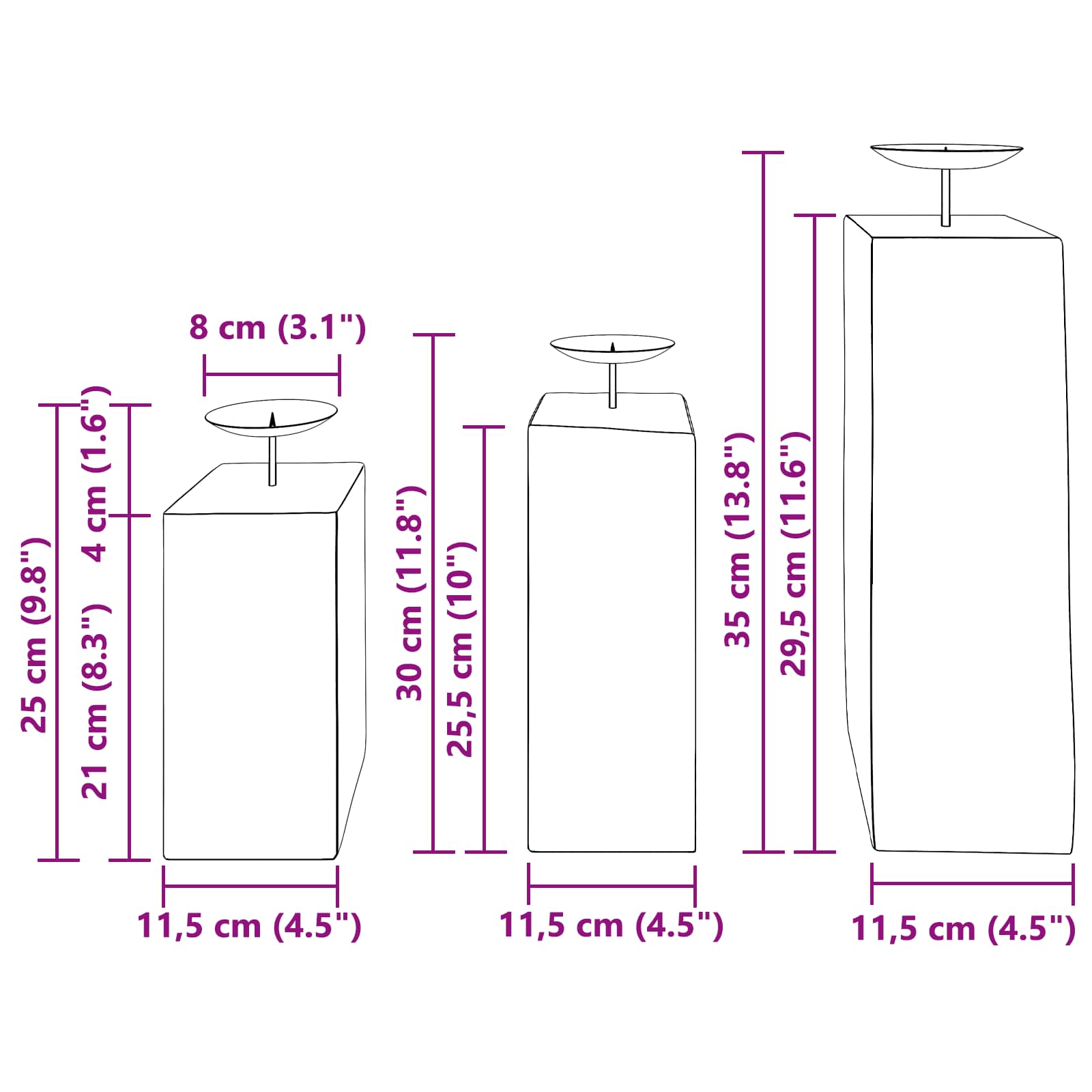 - Componenti Inclusi: Il set include tre portacandele con misure di 12 x 12 x 30 cm, 12 x 12 x 25 cm e 12 x 12 x 20 cm. Le diverse altezze rendono facile organizzare su tavoli o mensole, creando più livelli e profondità negli allestimenti.