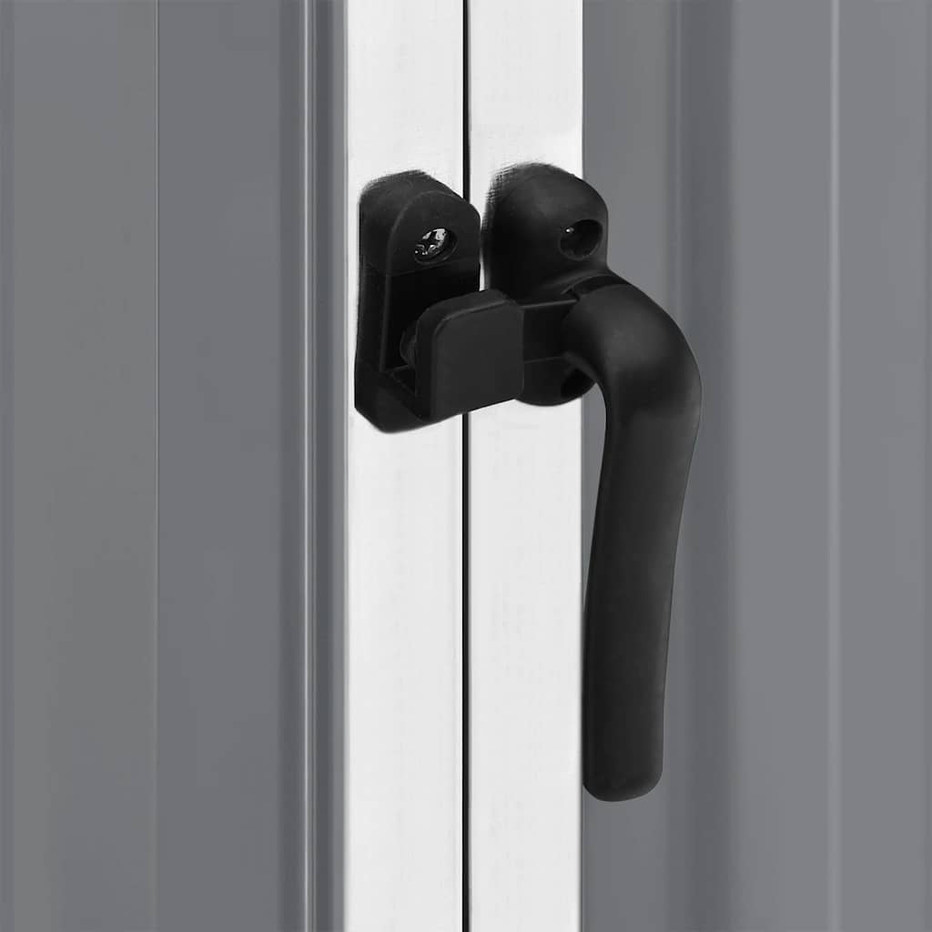 Questo capanno da giardino in acciaio zincato richiede una manutenzione minima ed è molto resistente. Le porte a doppia apertura nella parte anteriore consentono un facile ingresso e uscita. Inoltre, l'acqua piovana viene scaricata automaticamente dal tetto grazie al suo design inclinato.