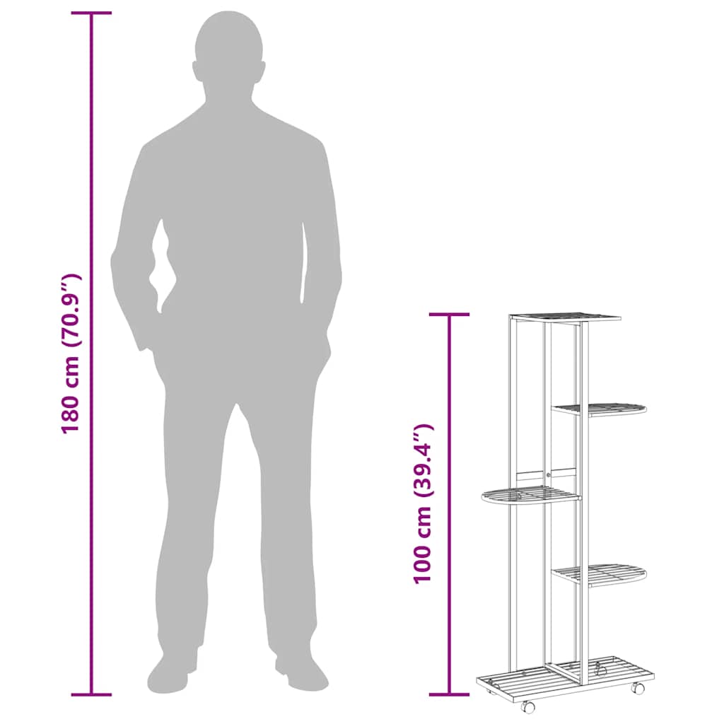Fioriera a 5 Piani con Ruote 44x23x100 cm Ferro Bianco