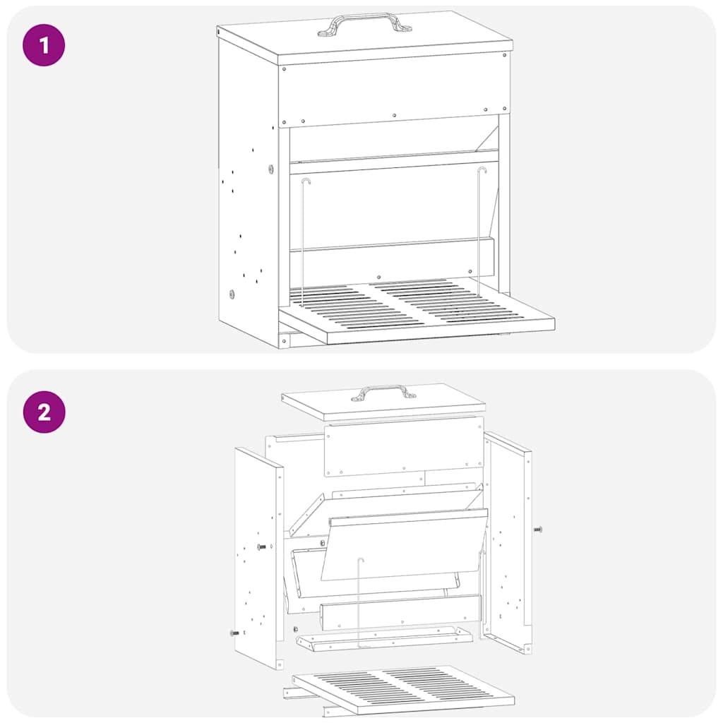 - Design in Acciaio Moderno Questo mangiatore a treadle è costruito in robusto acciaio per garantire durabilità e resistenza all'uso intenso. Oltre a essere pratico, ha un aspetto moderno e protegge il cibo dagli animali e dalle intemperie, rendendolo ideale per ogni ambiente.