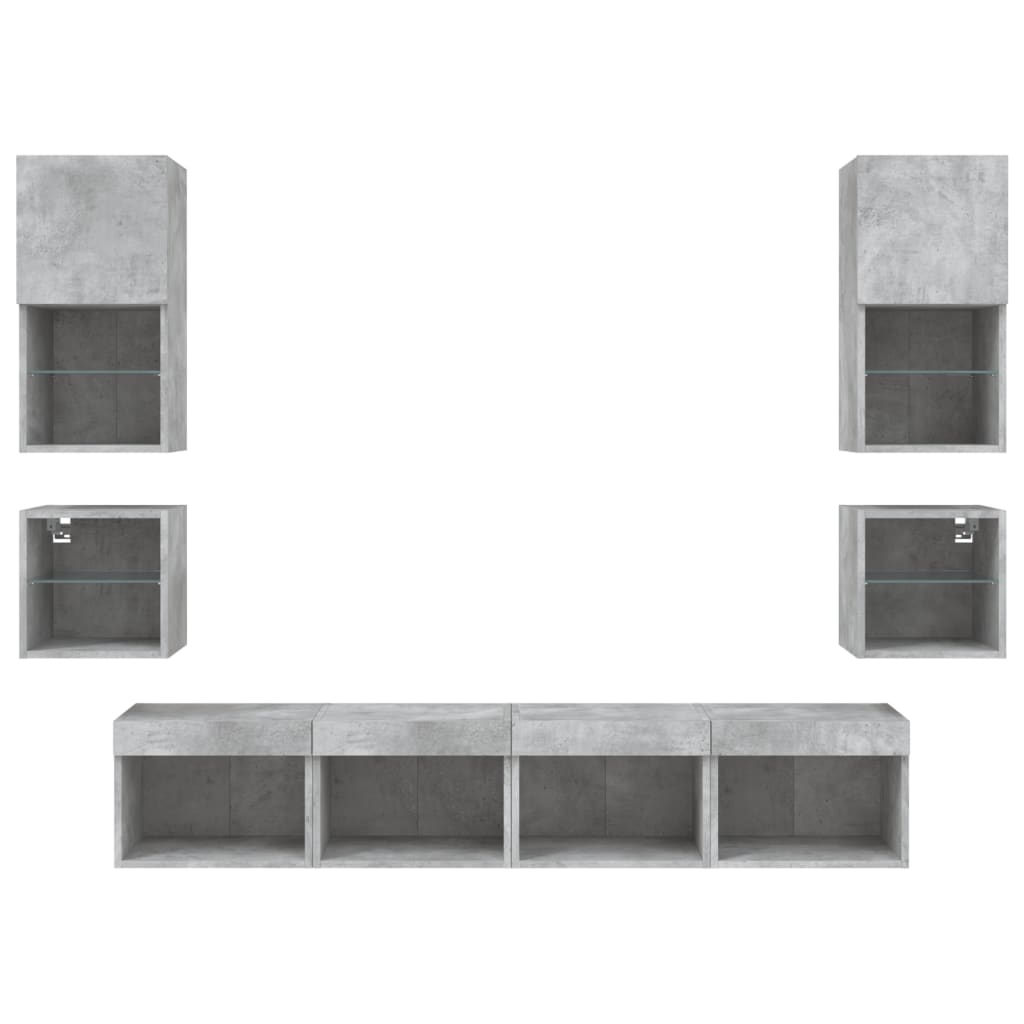 Mobili TV a Muro con LED 8pz Grigio Cemento Legno Multistrato