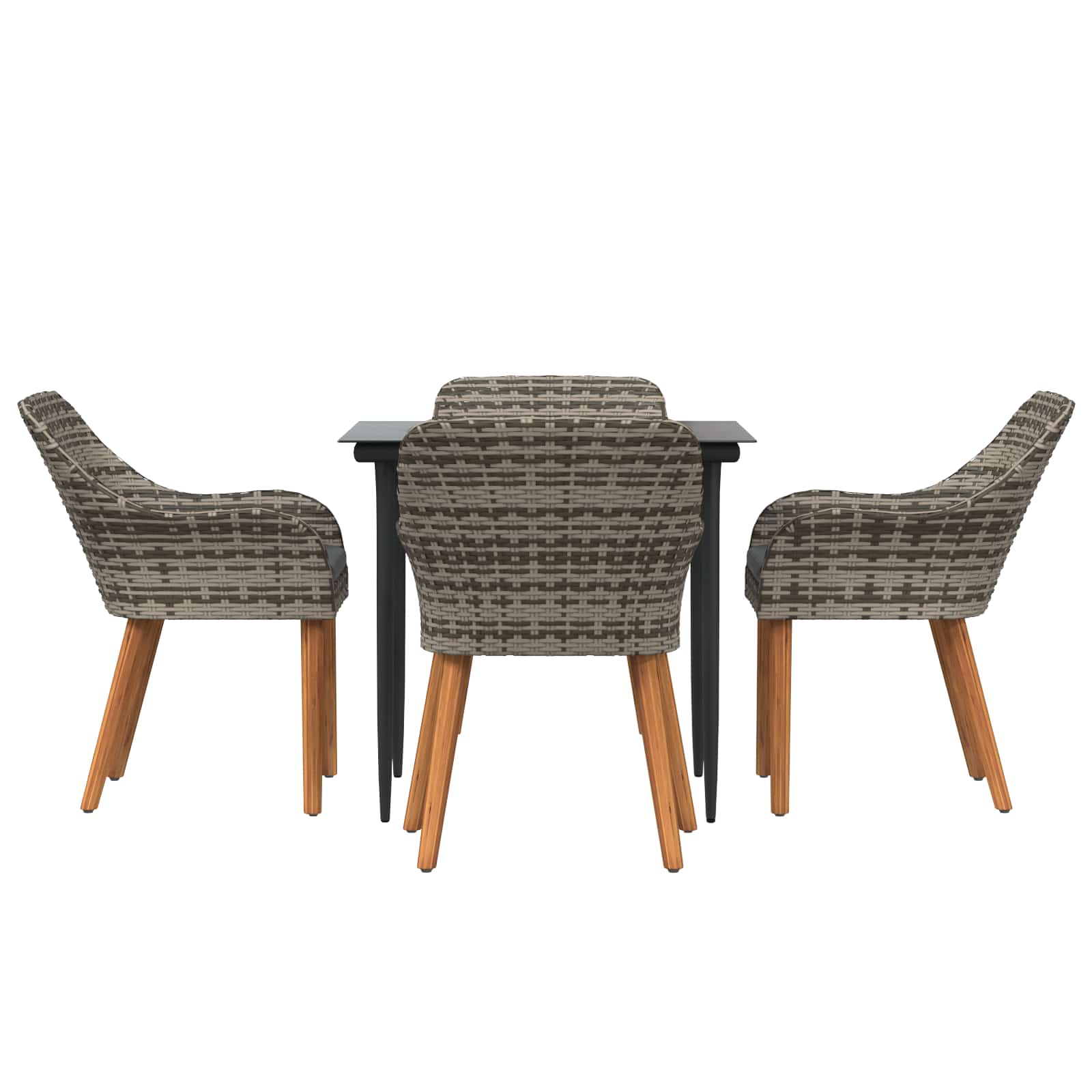 Set da Pranzo per Giardino con cuscino 5 pcs Grigio polyrattan