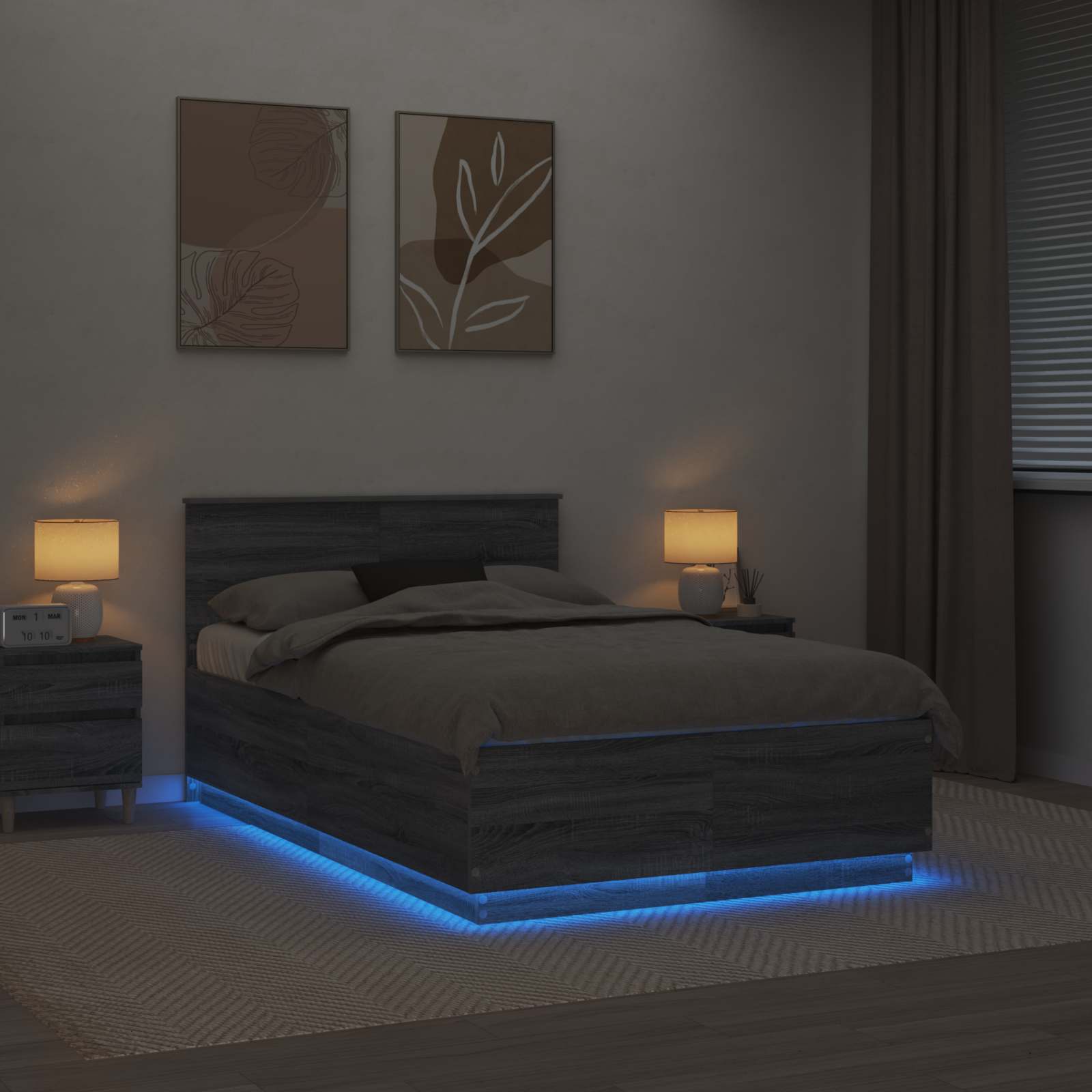 Struttura del letto con testiera Grigio Sonoma 135 x 190 cm