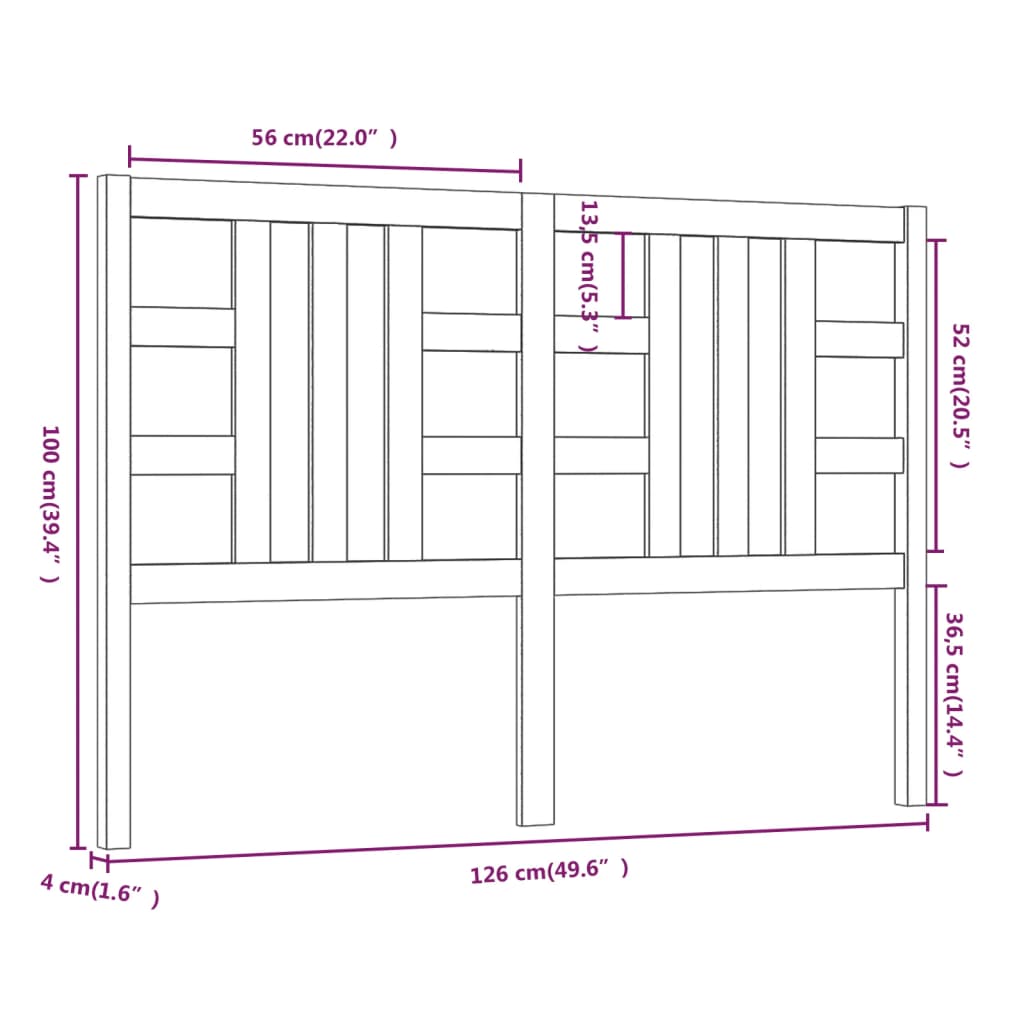 Schwarzes Bettkopfteil 126 x 4 x 100 cm aus massivem Kiefernholz