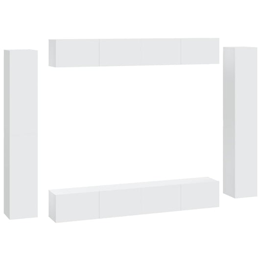 Set Mobili Porta TV 8pz Bianco in Legno Multistrato