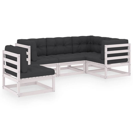 Set Salotto da Giardino 5 pz Bianco in Legno Massello di Pino