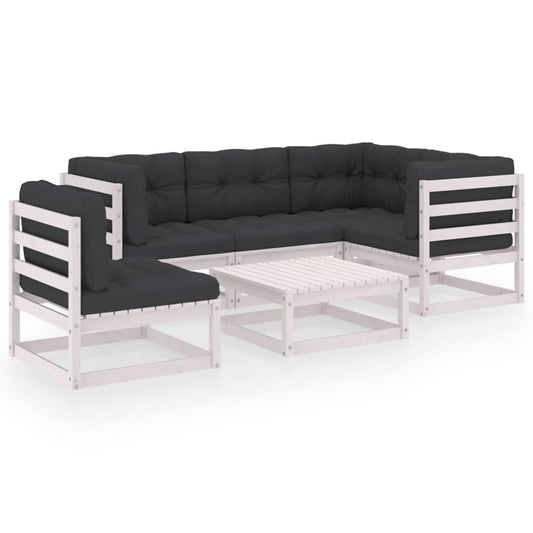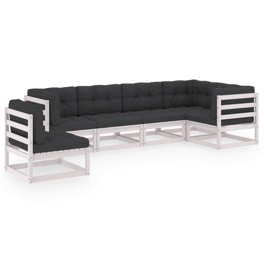Set Divani da Giardino 6 pz Bianco in Legno Massello di Pino