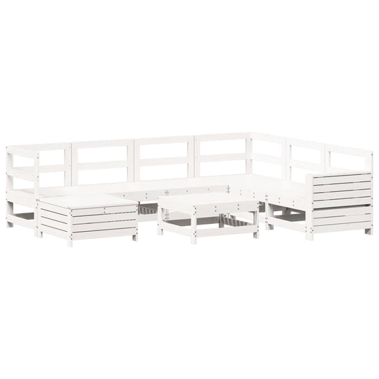 Set Divani da Giardino 8 pz in Legno Massello di Pino Bianco