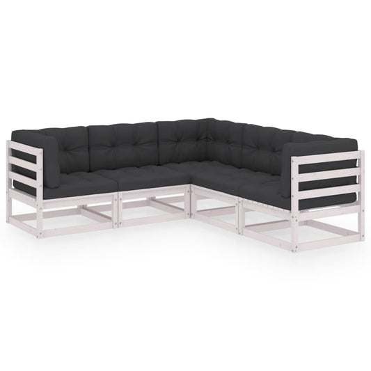 Set Salotto da Giardino 5 pz Bianco in Legno Massello di Pino