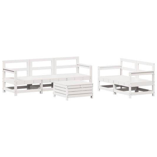 Set Divani da Giardino 6 pz Bianco in Legno Massello di Pino