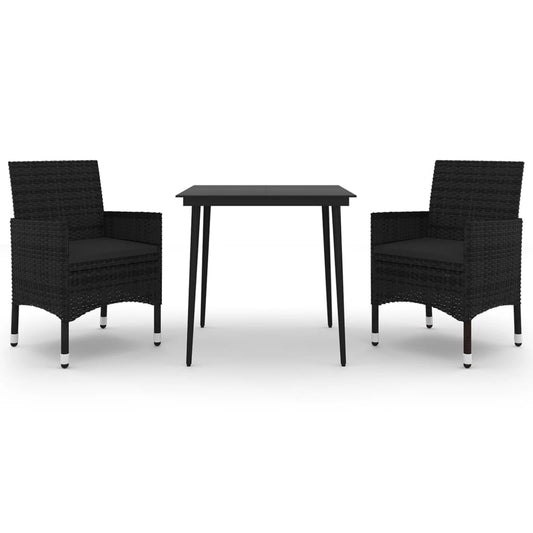 Set da Pranzo da Giardino 3 pz con Cuscini Polyrattan e Vetro