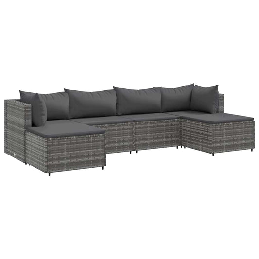 Set Divani da Giardino 6 pz con Cuscini in Polyrattan Grigio